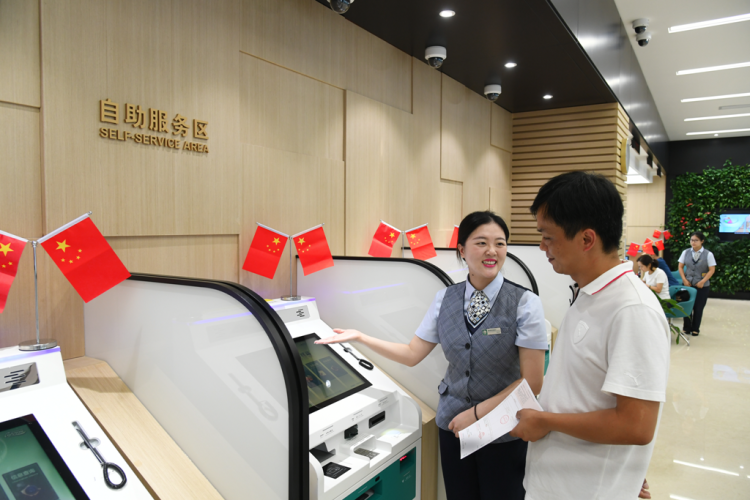 ■国网上海电力营业厅内,客服人员正在指导客户使用自助服务终端