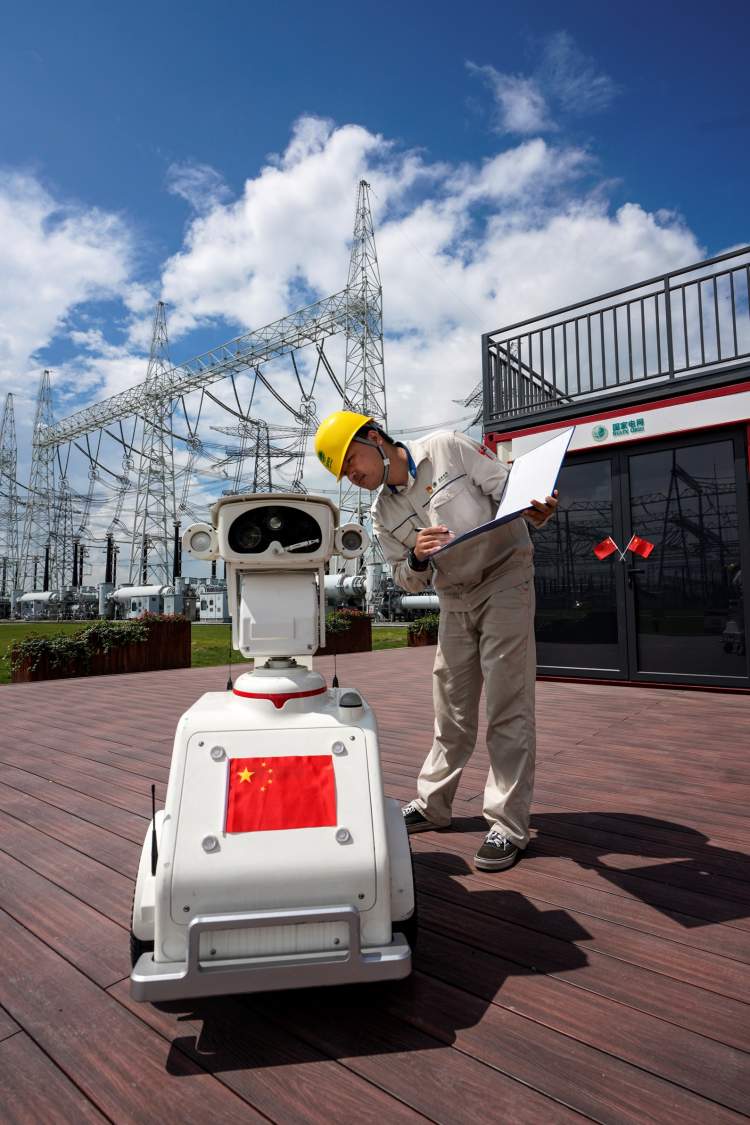 ■国网上海电力运维人员与智能巡检机器人共同开展巡视