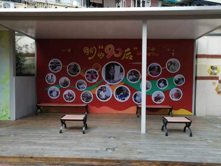 除此之外,辽源花苑还为社区中的“90后”拍摄了一组笑脸照,放置在小区休息点最醒目的位置。其中,最高龄的老人今年已经101岁,她和爱人曾是电影《永不消失的电波》的原形。
