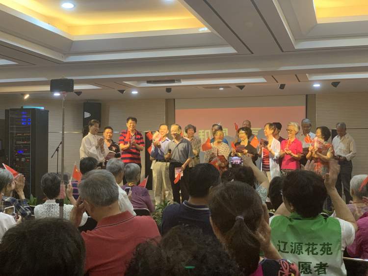 ”今天在座的当中,有一群特殊的人,他们和共和国同龄,与祖国同岁。他们生于1949,长在红旗下,他们的成长伴随着共和国的发展,他们是祖国建设、发展、强大的见证者,更是参与者“。主持人说完后,台上迎来了一批和祖国同岁的老人,辽源花苑志愿者们为老人们献上了特制的纪念品。其中,一位叫徐建国的老人发表感言:“我和祖国不但同年,还是同月同日出生,每天我都能看到祖国日新月异的变化,在这特殊的日子里,我希望祖国欣欣向荣、繁荣昌盛”!
