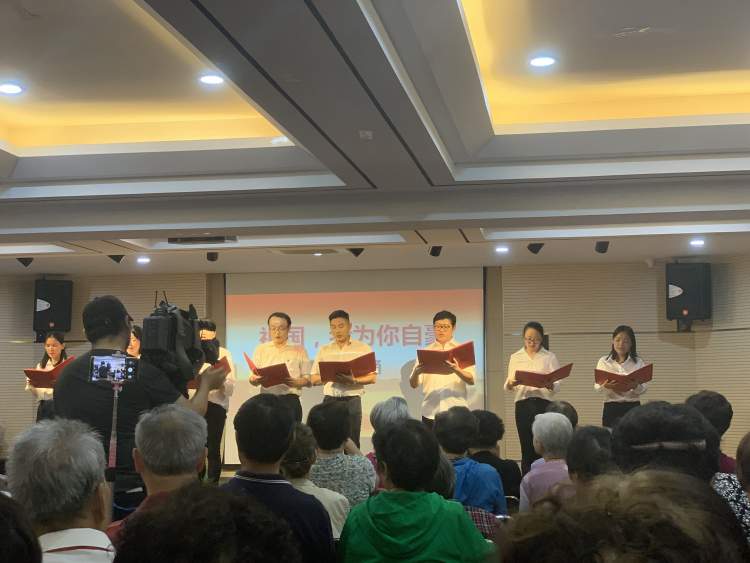 五环居民区党总支书记虞净告诉周到君,此次辽源花苑迎国庆文艺汇演,是由辽源花苑志愿者为广大居民精心准备的一台文艺演出。