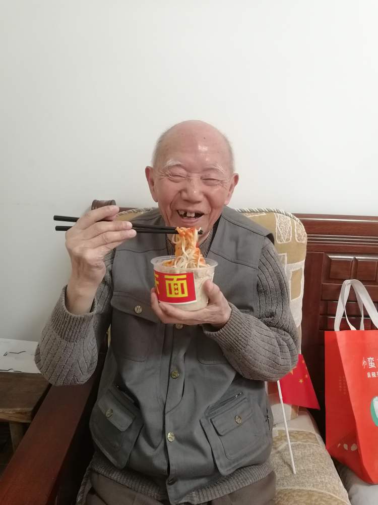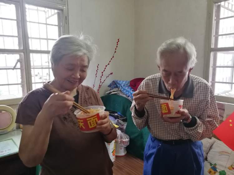 紧接着,志愿者们也上门为延长小区的几位孤老送上了“国庆面”。老人们纷纷表示,在国庆前夕,收到这样一碗好看又好吃的“国庆面”,心里都很开心。