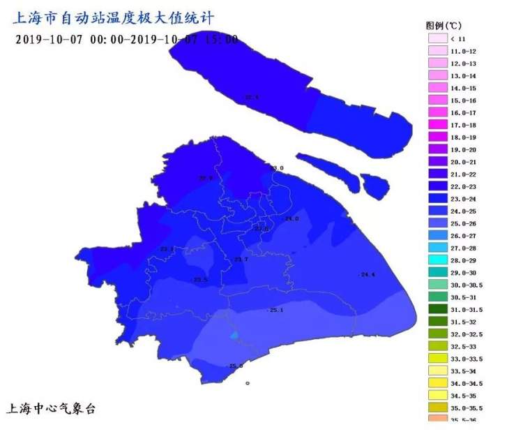 10月6日开始至9日,由于云系较多以及冷空气扩散影响,气温总体不高,日平均气温多在22℃以下。