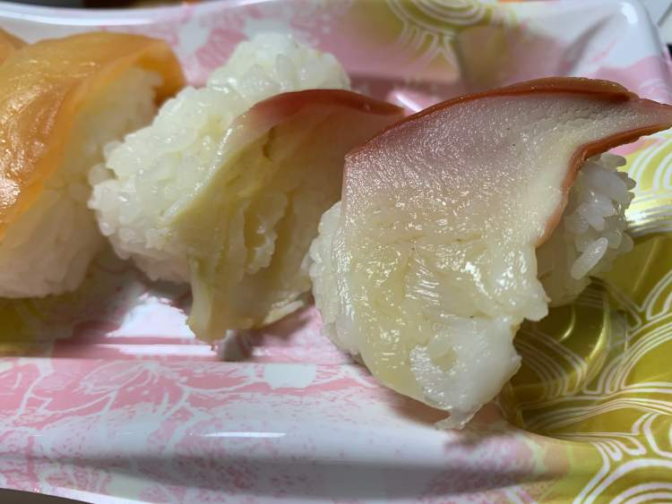 10月2日下午四点,陈先生通过饿了么平台订购了星游城争鲜寿司店里的一份组合寿司。据陈先生回忆,寿司组合内有鳗鱼、三文鱼和北极贝三种。吃了前两款,都没有任何异样,然而到北极贝的时候,有点不同了。