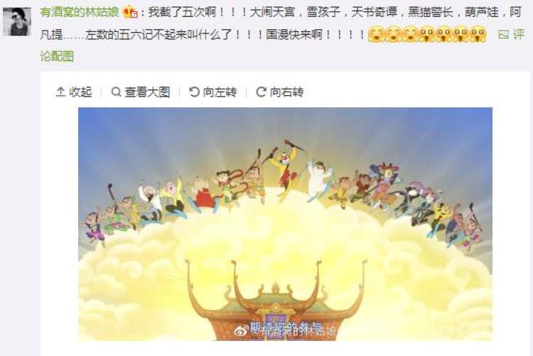 《雪孩子》(1980年出品)、《大闹天宫》(1961、1964年上下集)、《哪吒闹海》(1979年)、《天书奇谭》(1983年)、《葫芦兄弟》(1989年至1991年)……网友们一边观看短片一边如数家珍,将经典角色的出处一一道出。甚至还有眼尖的网友在片尾的大合照中,发现了黑猫警长、没头脑和不高兴、阿凡提等角色。