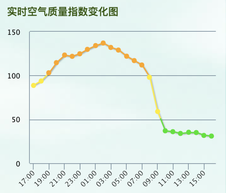昨夜到今晨,上海出现了轻度的空气污染,不过白天之后空气质量就好转,到中午之前空气质量已经转优了。