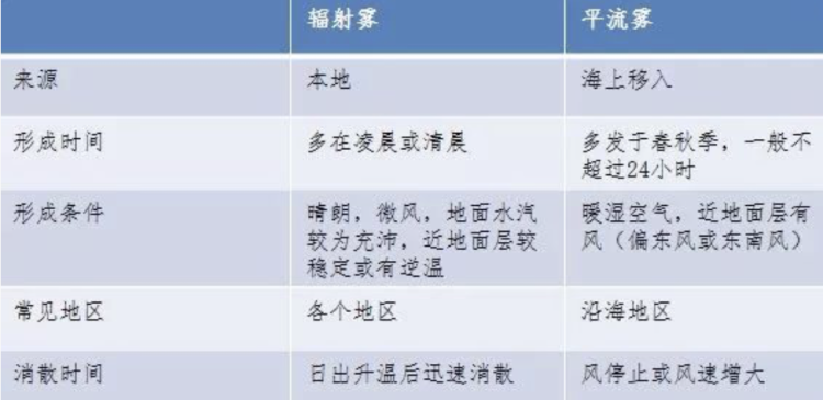 辐射雾多发生在陆地,平流雾多发生在沿海地区。上海的特殊地理位置,春秋之际两种雾频发。