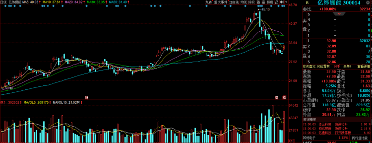 10月9日,亿纬锂能开盘大涨,报收32.90元/股,总市值319亿元。值得一提的是,该股自9月12日回调,截至8日的近1个月间跌了30%。盘后数据显示,9日深股通买入该股8147万元,卖出1.4亿元,净卖出5882万元。