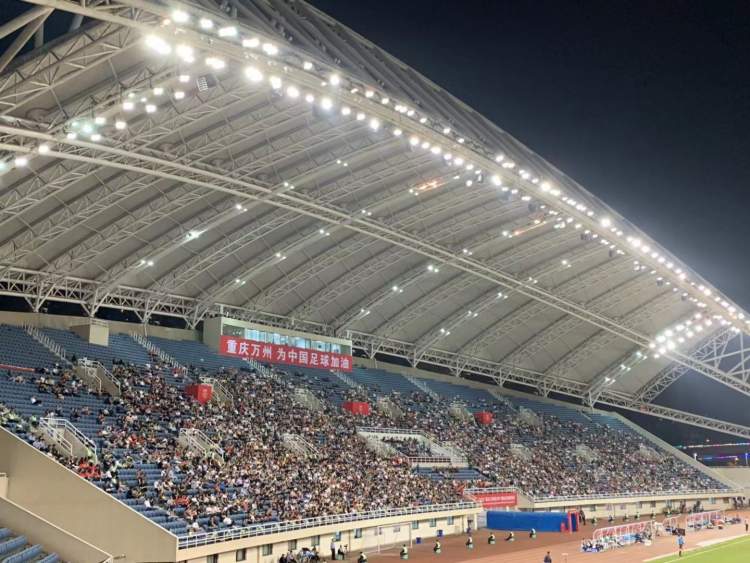 能容纳2.6万人的万州体育场被填满了一大半,晚间场的比赛VIP票价120元,最便宜的看台票只售50元,因此吸引了男女老少拖家带口而来。他们嗑着瓜子挥着小国旗,看到中国球员带球突入至禁区附近也不惜忘情投入加油。总的来说,气氛还算不错。对于绝大部分现场观众而言,张玉宁是他们唯一认识的球员,因此看台上时时传来“张玉宁,进一个”的喊声。终于也没辜负人们的呐喊,这名球员下半场第56分钟接到胡靖航左路的传球攻入一球。第67分钟,张玉宁梅开二度。值得一提的是,两个进球都来自于定位球战术。