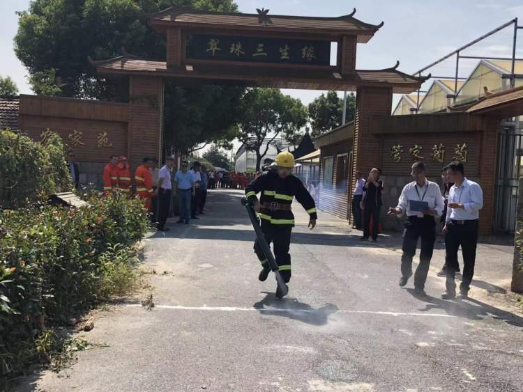 在风火灭火器使用和负重走中,裁判员红旗一挥之后,选手迅速发动灭火器,背在肩膀上奔向“着火点”,出水灭火,最快的选手仅用13.75秒。