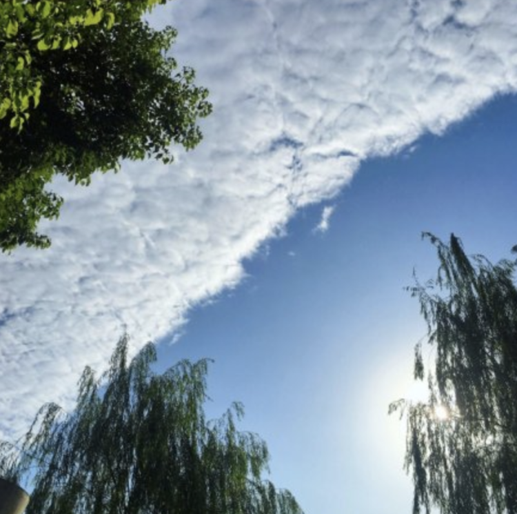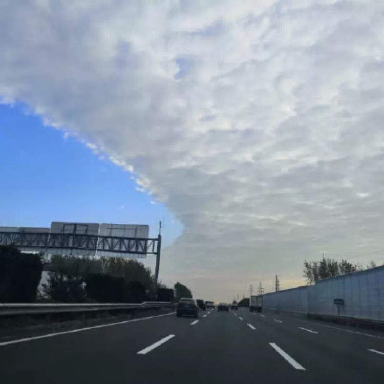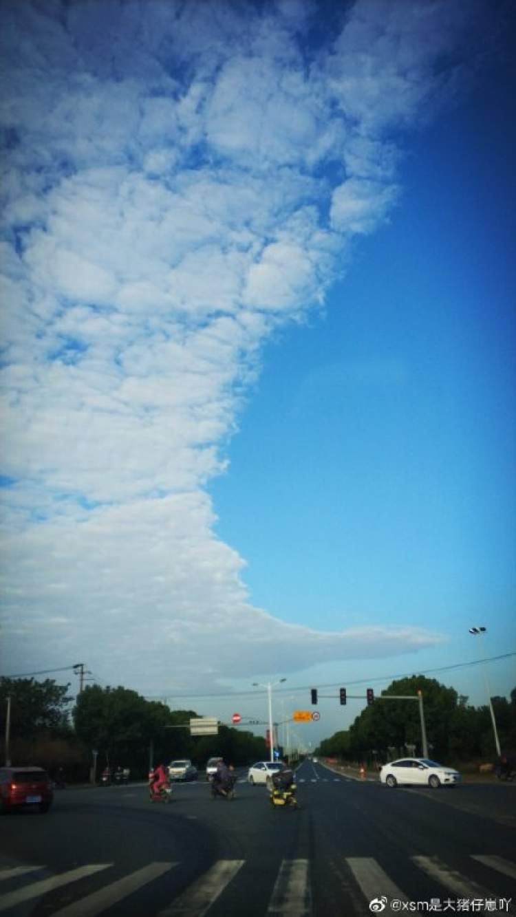 今天早晨,上海南部天空出现了“阴阳天”,一半天空被紧密的白云覆盖,另一半则是蔚蓝无云的晴空,中间是一道泾渭分明的界限。