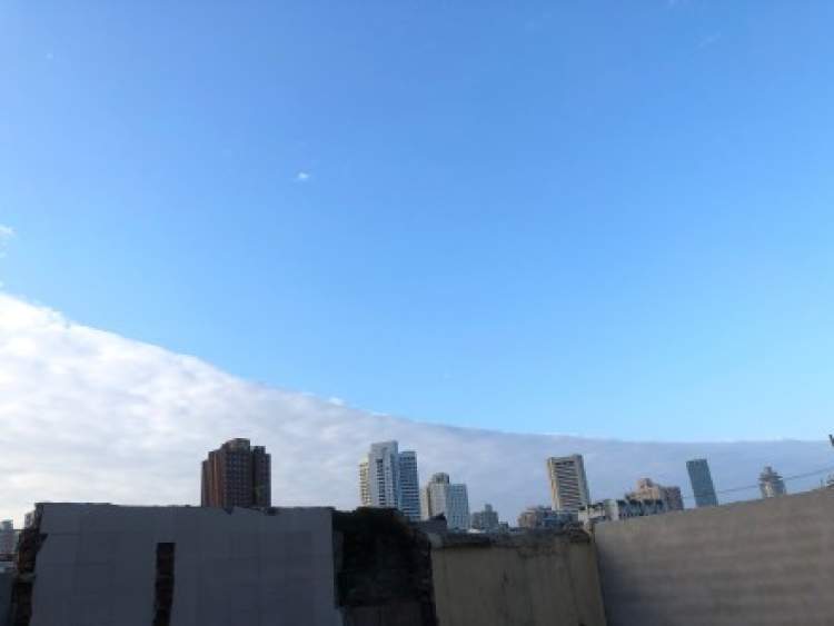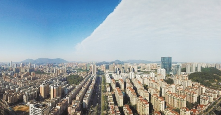 气象部门权威解释:是干空气团和湿空气团的交界面,类似与河流之间出现的泾渭分明现象。这些界面可能是平直线也可能是圆弧状。俗称“阴阳天”。