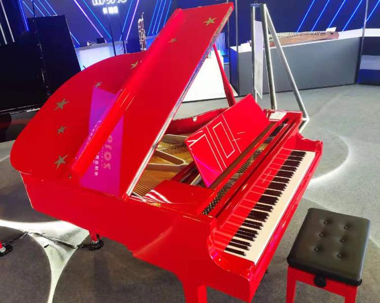 开展首日,记者看到了另一台珠江恺撒堡“中国红”系列钢琴,钢琴外观是经典的红色,配合五角星和“70”概念图样,庆祝新中国成立70周年。
