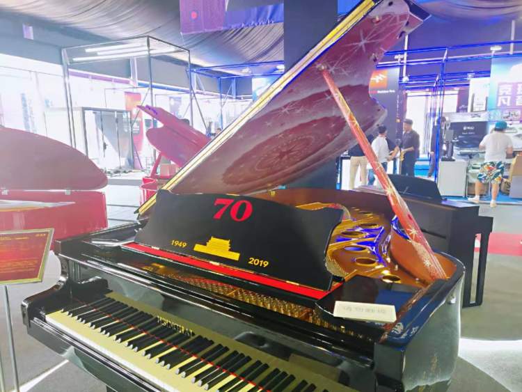 在“Music Lab音乐实验室”展区,星海公司特别带来了一款庆祝新中国成立70周年、建厂70周年的纪念版三角钢琴。