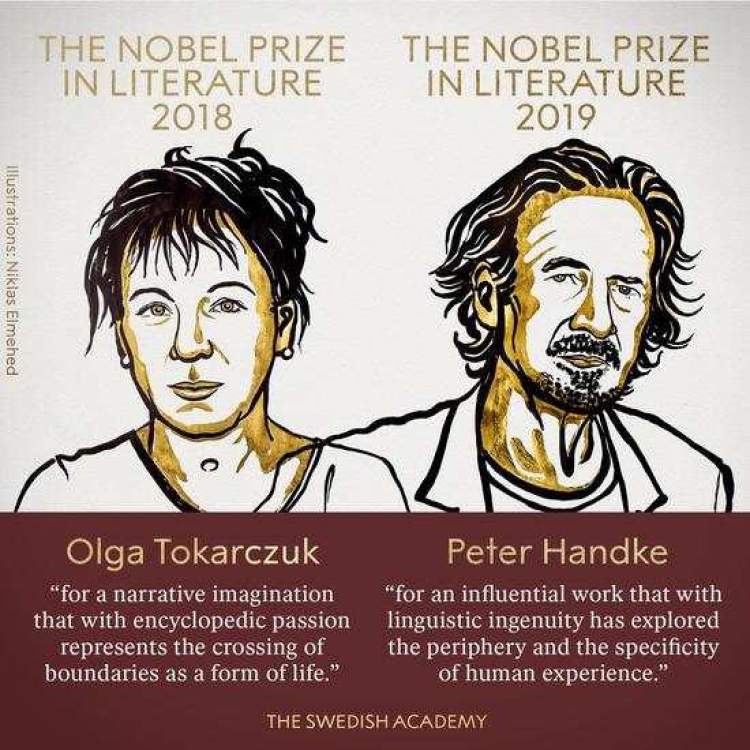 当地时间10月10日,瑞典文学院常务秘书马茨·马尔姆,宣布将2018年、2019年诺贝尔文学奖分别授予Olga Tokarczuk奥尔加·托卡尔丘克,波兰作家,Peter Handke彼得·汉德克,奥地利作家。