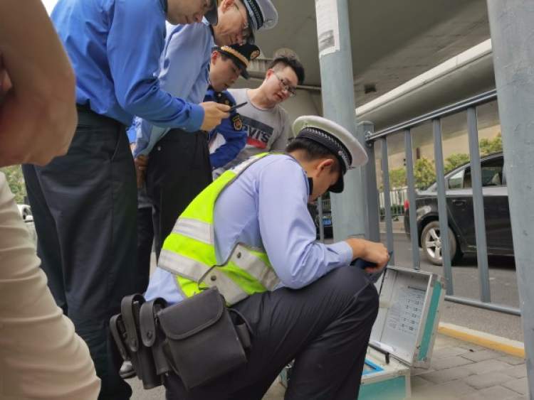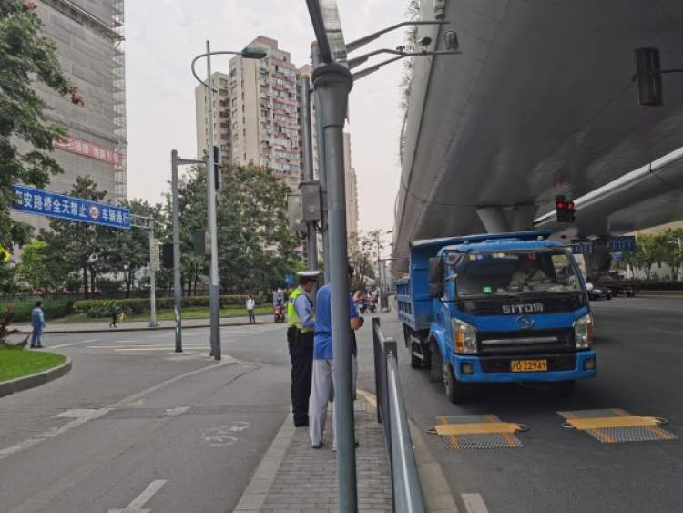 一旦发现车辆超限通过海安路桥,在附近巡查的交警便会引导车辆在军工路一侧,也可追踪车辆运行轨迹进行拦截,使用便携式汽车称重仪进一步检测,再次确认车辆是否存在违法行为,并对违法行为进行处罚。