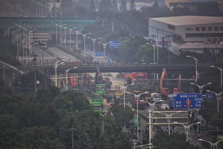 随后,无锡交通广播台播报消息:312国道上海方向位于锡港路上方的高架桥发生侧翻。
