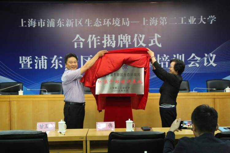 今天,“上海市浦东新区生态环境局—上海第二工业大学研究生联合培养基地”和“上海市浦东新区生态环境局—上海第二工业大学环保干部培训基地”揭牌。