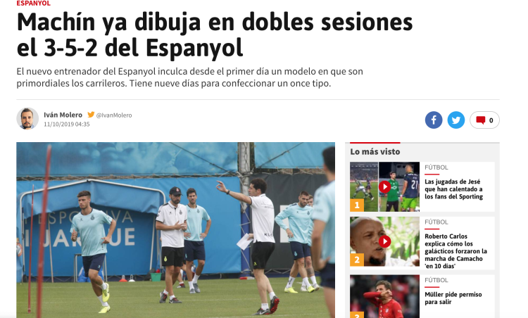 北京时间今天,西班牙媒体《阿斯报》对刚刚换帅的西班牙人进行了报道,根据该媒体的报道,从上任的第一堂训练课开始,新帅马钦就确定了球队接下来的主打阵型为3-5-2,这对于中国前锋武磊来说无疑将是更大的挑战。