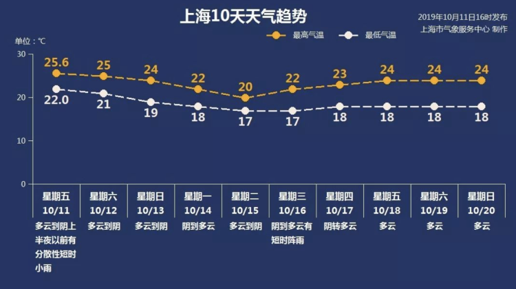 其中,下周二,本市气温将来到近期低位,全天在17-20℃之间。