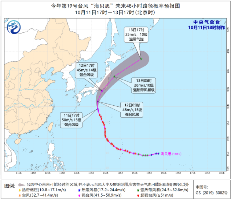 另外,今年第19号台风“海贝斯”将登陆日本。