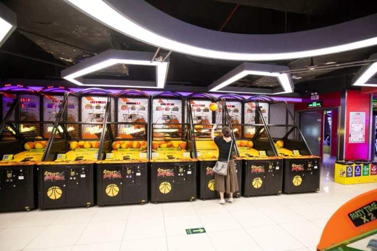 这里的游艺项目相当庞杂,硕大的赛车游艺机、动感的跳舞机,还有“拳皇97”、投篮机、太鼓机、推币机、桌球……