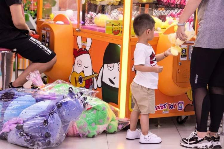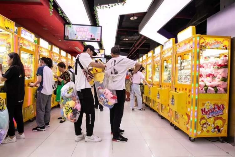 当然,一众游艺设施中,要数抓娃娃机数量最多、人气最旺了。