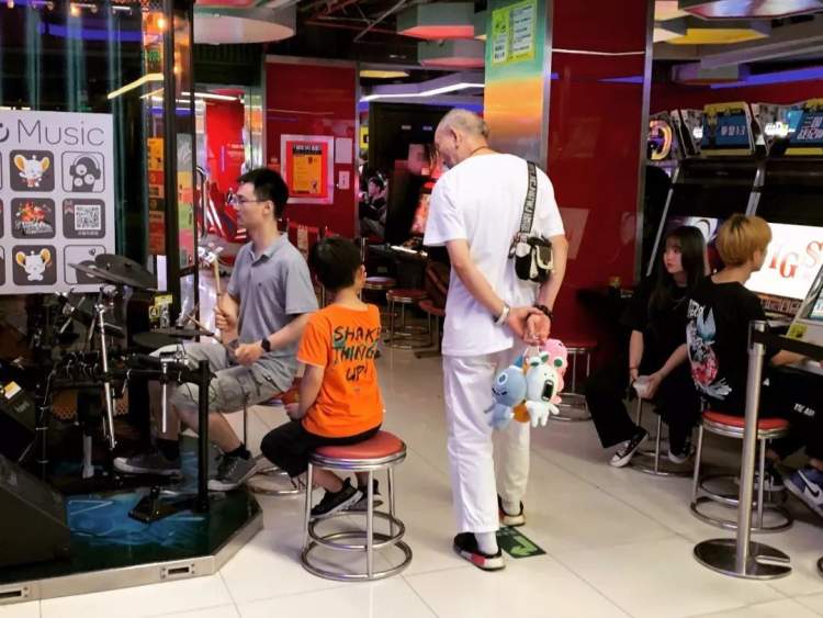 ■游艺厅里不乏有些年纪的阿姨爷叔,也在投入地玩着。