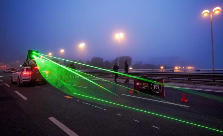 此外,跑在前头的领航车打出的绿色激光是159的成绩标识,同样有破风的作用,并且为基普乔格提供了很好的借鉴作用。