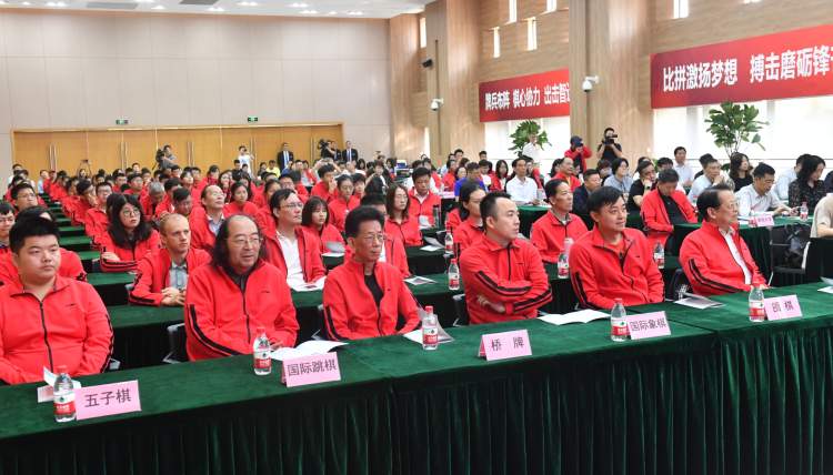 市政府副秘书长虞丽娟向代表团团长,市体育局党组书记、局长徐彬授旗;代表团副团长、市体育局副局长赵光圣主持会议,五子棋队教练顾炜、围棋运动员芮乃伟、国际象棋运动员居文君作流发言。