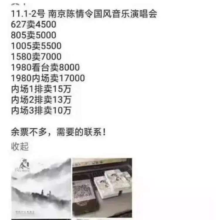 最后,无孔不入的黄牛又来了!原本627元票价被卖到了4500元,805的被卖到了5000,1005的卖5500,1580的卖7000,1980看台卖8000,1980内场卖17000,而内场就精彩了,三排被卖到了10万,2排13万,1排甚至标价到了15万。