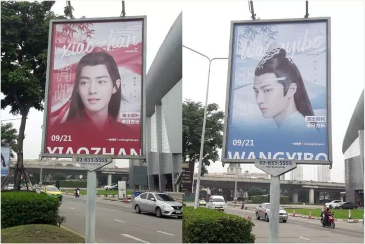 9月在泰国举办的粉丝见面会,肖战、王一博两位主演的海报挂满大街;