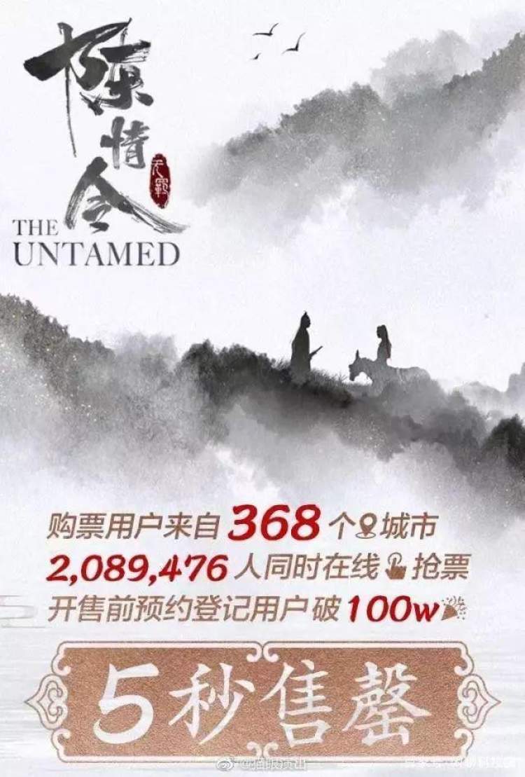 而该剧在国内第一场也是最后一场演唱会——即将于11月1日-2日举行的《陈情令》南京国风音乐演唱会,则迎来超过200万粉丝抢票,仅仅5秒钟所有门票就宣告售罄。