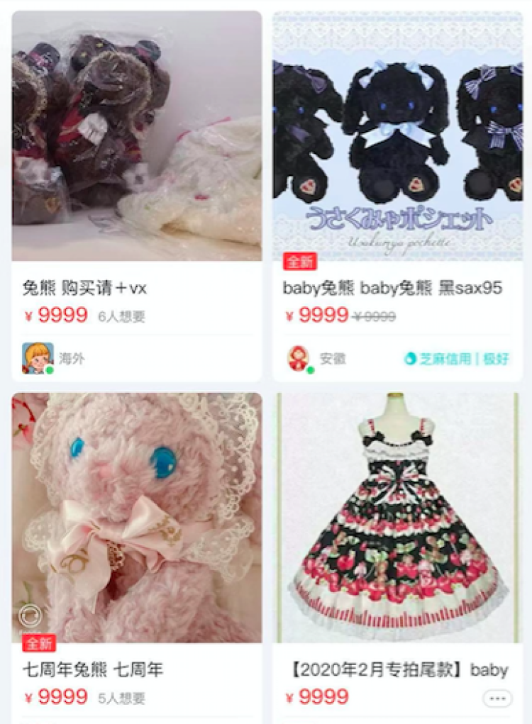 同样是Baby旗下的“中村十字”lo裙,也是受到大批lo娘的追捧,原售价在2000左右的中村十字,现在,在闲鱼平台上搜索,中村十字的价格已经翻了不止一倍,最高价格已近万元。