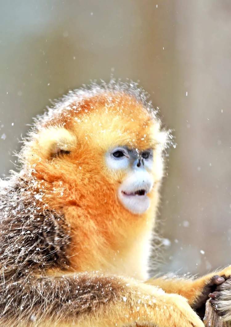 神农架金丝猴戏冬雪(摄影 刘曙松)