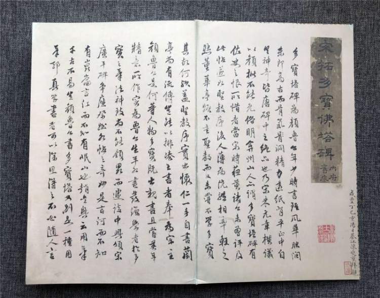 为迎接华东师范大学68周年校庆,华东师范大学图书馆与华东师范大学出版社合作,将此册宋拓《多宝塔碑》按精装本、仿真复制本两种装帧形式影印出版。