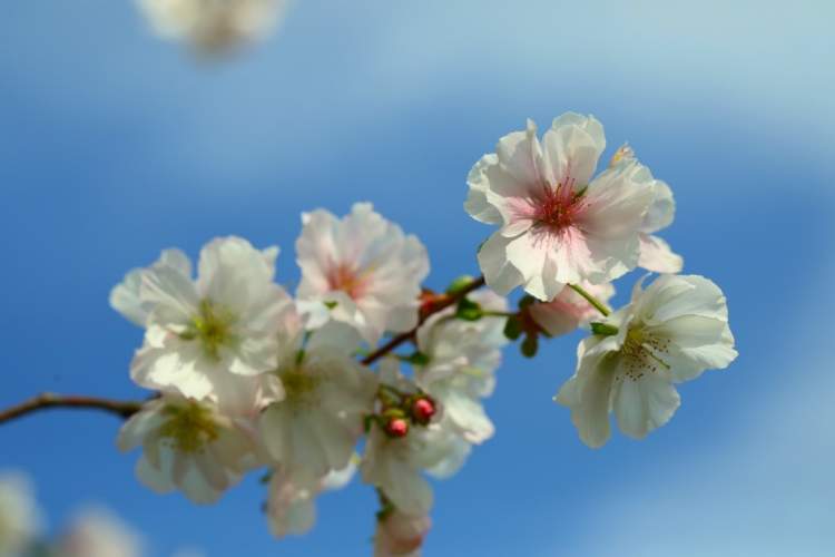 据悉,辰山植物园共栽植近50株“十月”大叶早樱、“十月红”大叶早樱和冬樱。这些樱花也都具有二次开花的特点。十月樱花为复瓣,花朵呈淡红色,花期一般在3月下旬和10月中下旬,冬季偶尔也会开放。而冬樱则为白色的单瓣花,始花期为10月中旬,营养和阳光充足的话,整个冬季可持续开放。