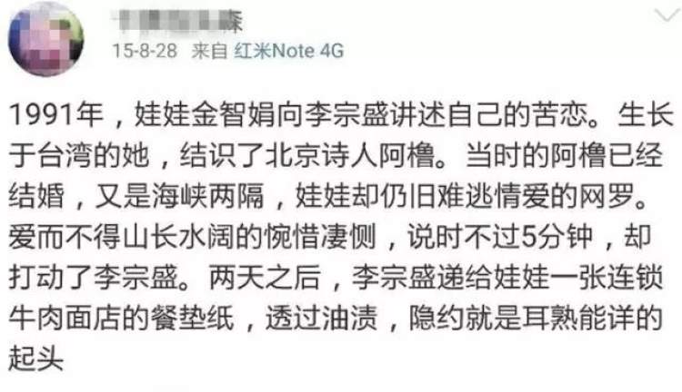 倒是李宗盛,在很多场合,不管接受媒体采访,还是在个人演唱会上翻唱这首歌的时候,都会提到:这首歌,写的就是娃娃本人的爱情故事。