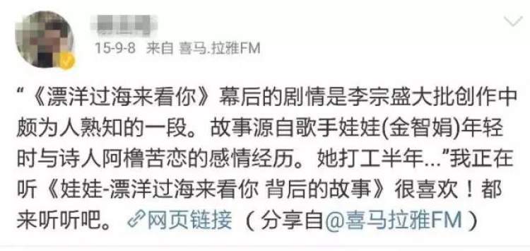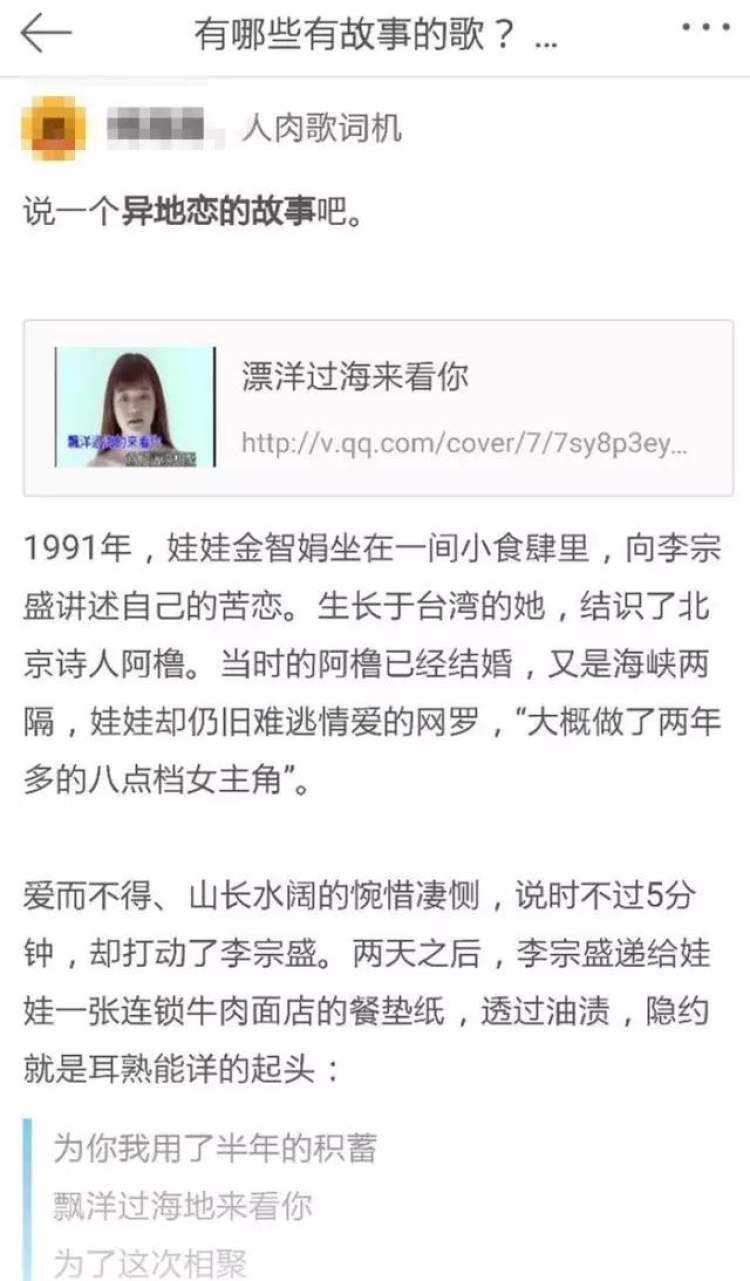 于是就有热情的网友问了呀:那“漂洋过海来看你”的真实故事版本到底是什么呀?