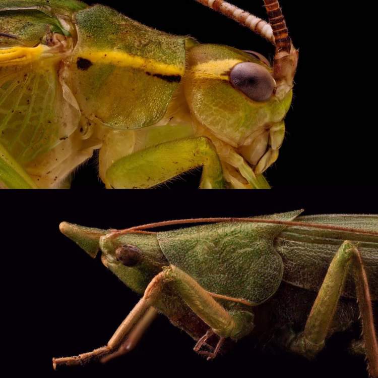 “鸣虫肖像”精选的10余幅特邀摄影作品在墙面隐现,常见鸣虫的口器、触角、刚毛及听器等超微结构第一次以巨幅摄影的形式出现在展览中,让人感受以宏大画面展现微小特征时的震撼。