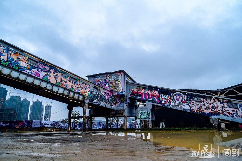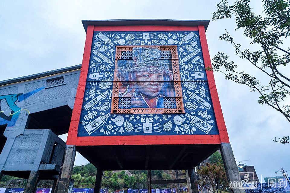 如今,长长的传送带早已停止工作,取而代之的是艺术家们用他们神奇的画笔,通过涂鸦有苗族少女的装扮、有非物质文化遗产蜡染等,为老厂房赋予了新的意义。