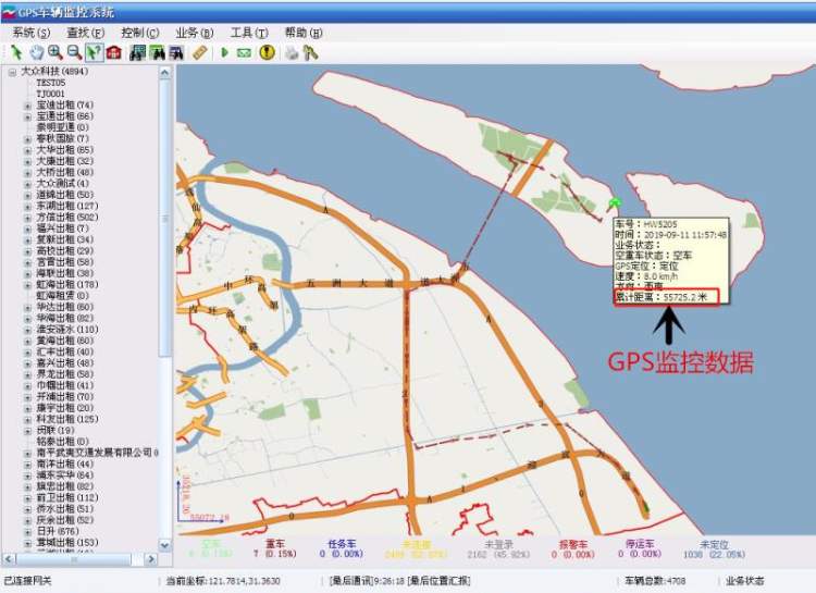 以今年9月11日的一笔从浦东机场到长兴岛的业务为例:车辆GPS轨迹显示起点为上海浦东国际机机场1号航站楼,经华夏高架路、S20外环、五洲大道、上海长江隧道,到达目的地长兴岛合作路,累计里程55.7公里。而车辆的实际营运数据却显示为66.7公里,两者相差10公里之多。