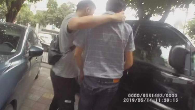 ▲民警在广东惠州抓获饲养销售珍稀陆龟的袁某