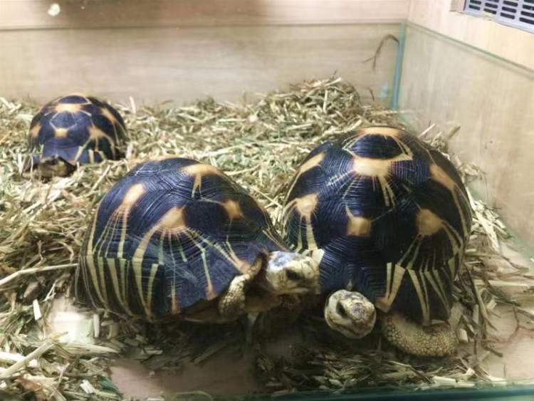 据了解,辐射陆龟又叫放射陆龟,陆龟科土龟属,分布区域为非洲马达加斯加岛的南部,是一种花纹非常美丽的龟类,属于国际濒危动物,列入《濒危野生动植物种国际贸易公约》(CITES)I附录,等同于国家一级保护动物。
