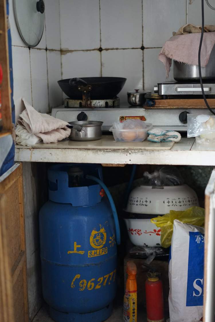 那时,家家户户都有三四个孩子,孩子长大成人要分房睡,要结婚,本来拥挤的家就更加住不下了。也因为住房困难的关系,我和弟弟至今未婚。两个妹妹嫁人了。早年我还有份工作,能自给自足。我从1981年到1998年,在上海第五棉纺织厂上班,当一名辅助工人——拿纱。1998年,工厂突然关门,我被迫失业。2000年后,我和弟弟在西藏北路借了房子,成立了一家公司,接平面设计的活计,开始了兄弟俩的创业之路,遗憾创业失败。一楼的杂物其实都是有用的东西,比如创业时采购的复印机、冰箱都堆放在这间屋子里。