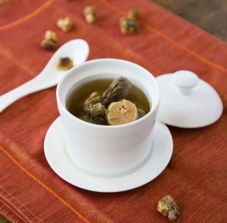 三亚美高梅度假酒店早已准备好了蕴藏着三亚秋味的姬松茸干贝汤。生长于夏秋季节且富含氨基酸的姬松茸搭配干贝共“浴”汤底,置于蒸箱里足足四小时。姬松茸菌盖嫩,菌柄脆,味纯鲜香;干贝富含谷氨酸钠,味道极鲜。