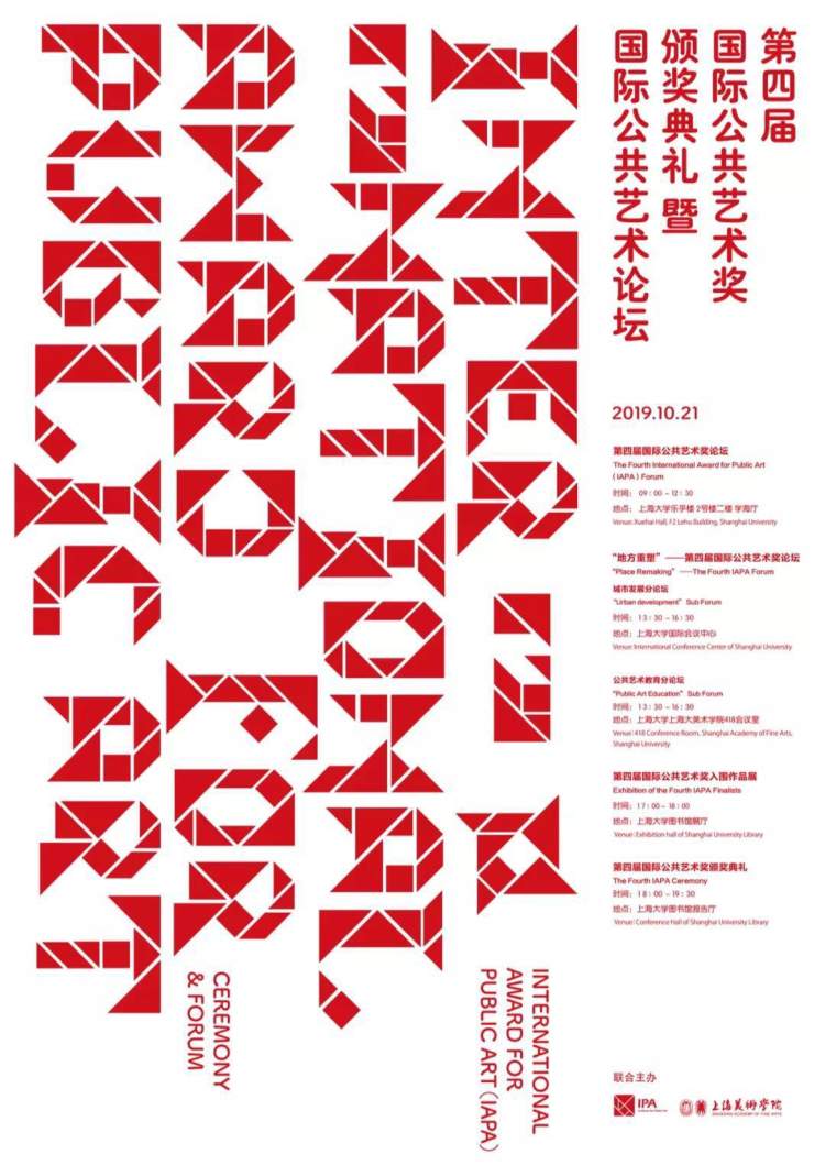 由上海大学美术学院与国际公共艺术协会(IPA)共同主办的第四届国际公共艺术颁奖典礼暨国际公共艺术论坛,于2019年10月21日在上海大学举行。