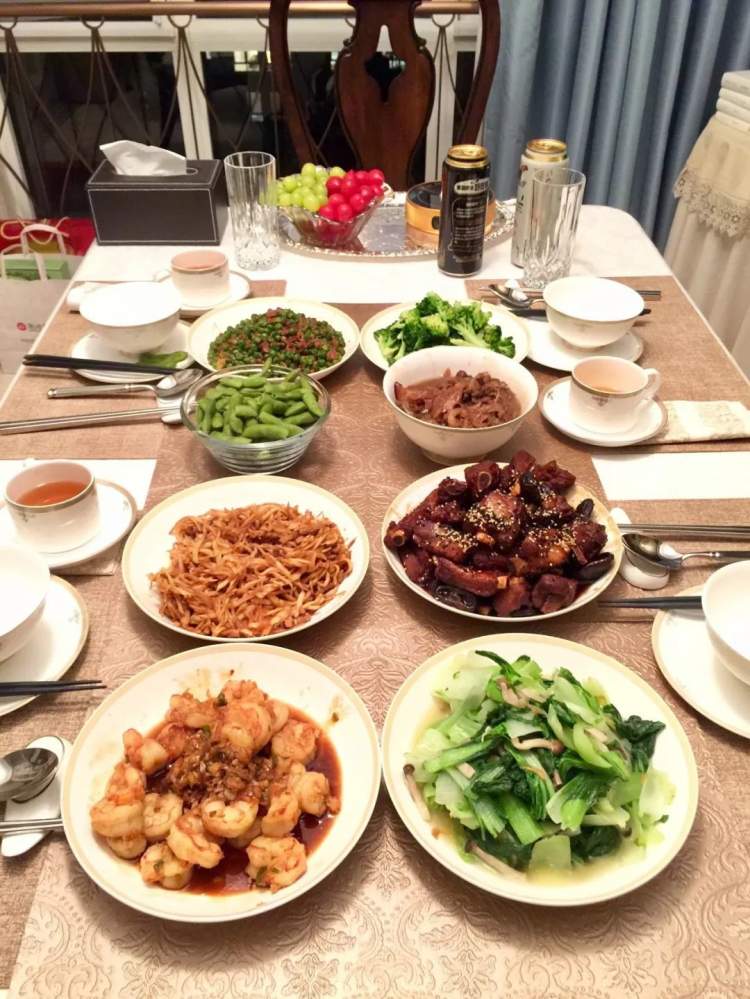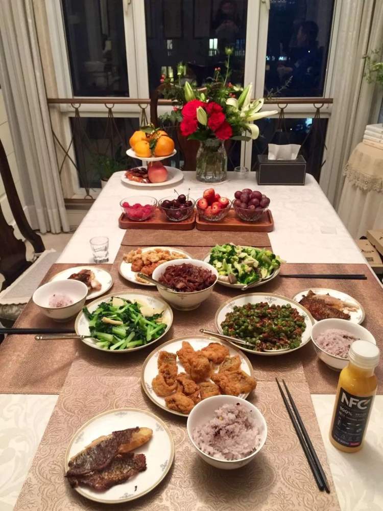 图为去英国留学前夕的感谢晚宴,张汇元亲手做了一桌好菜感恩父母。
