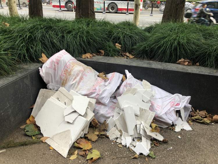 对于部分业主反映建筑垃圾影响了日常生活,废旧泡沫箱、废纸板、塑料瓶、废旧门板、袋子等垃圾,分别占据了上街沿的人行道、绿化带。