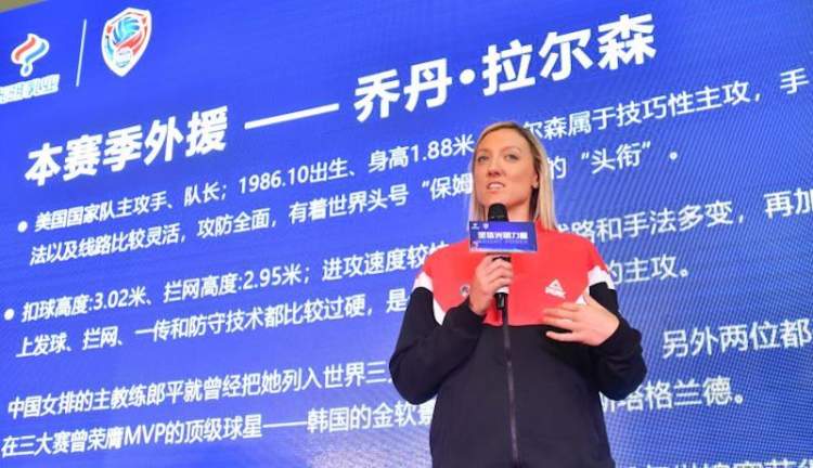 乔丹·拉尔森出生于1986年10月,自2010年起成为美国女排主攻线的绝对主力,帮助球队在2010年世锦赛获得第四名、2011年世界杯和2012年伦敦奥运会两夺亚军。她是继金软景之后,上海女排俱乐部再度引进的一位世界顶尖球员。